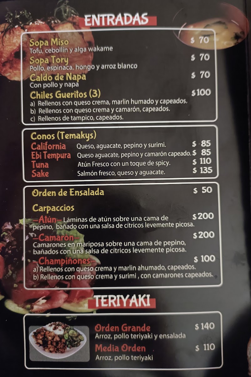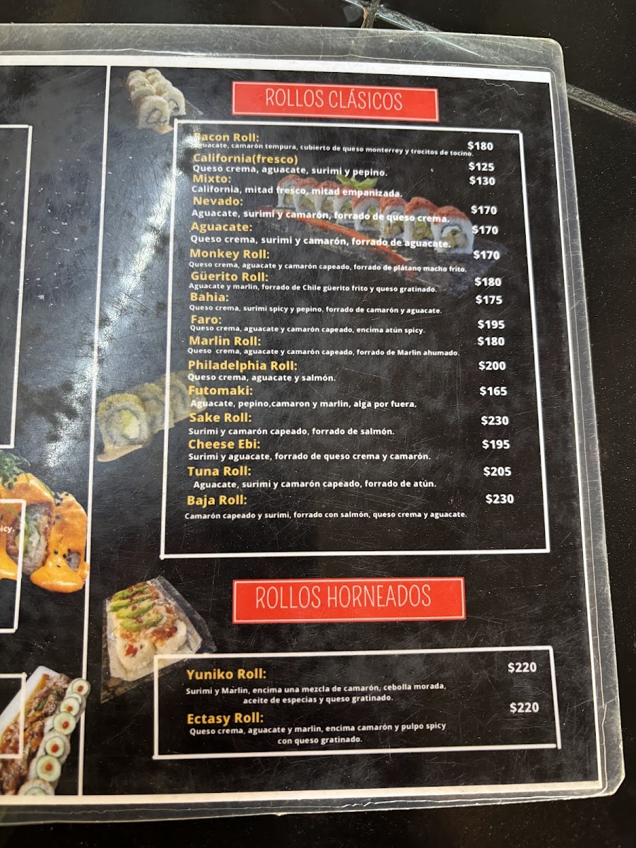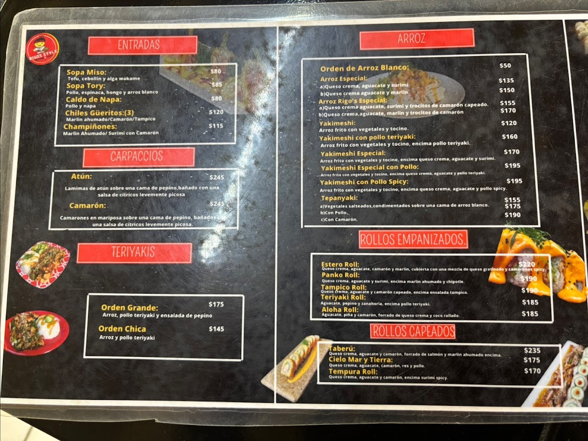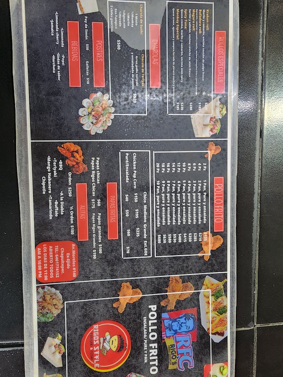 The menu offers a combination of Japanese-style sushi and fast food options, catering to a range of tastes. Visitors can expect a selection that includes different types of sushi rolls as well as fried chicken dishes, reflecting a blend of both cuisines.